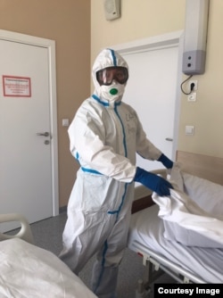 Алдар прошел медобследование, затем инструктаж по работе. Его научили правильно надевать и снимать "скафандр", как он сам называет свой защитный костюм.